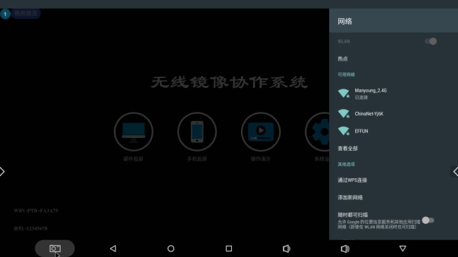 APP下载后,请把手机WIFI连接到局域网,也就是外部2.4G路由器。然后打开APP,“投屏专家”软件会自动搜索局域网内的飞图盒设备进行自动连接,然后就可以开始手机无线投屏啦。